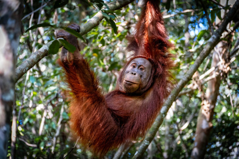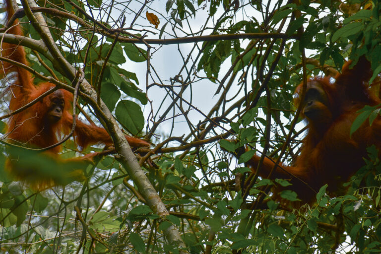 Sumatra: Trek into Bukit Lawang & watch wild orangutans in the trees.